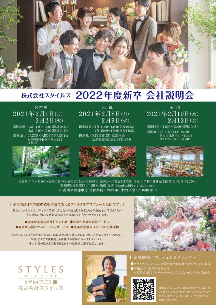 京都・岡山・名古屋における2022年度新卒会社説明会のご予約受付を開始しました!