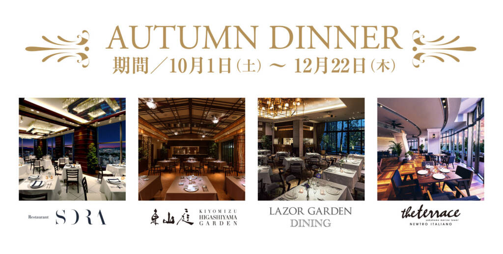 CLOVER NEWSニュース NEWS OKAYAMA YOKOHAMA 全店レストランで<AUTUMN DINNER>開催中! スタイルズのレストラン全店、岡山<レストラン ソラ>、京都<東山庭>、名古屋<ラソールガーデン・ダイニング><ザ・テラス 横浜マリンタワー>で秋の期間限定コースディナーを開催しています。それぞれのレストランで新鮮な地元食材をメインに秋の味覚を満喫いただけます!詳しくは各店のサイトをご覧ください。 顔合わせをぐだぐだにしない進行やコツを確認!何より準備が重要 NEWS TOP 逆プロポーズでプレゼントを渡すなら?おすすめやタイミングをご紹介 関連記事 NEWS OKAYAMA YOKOHAMA 2025.02.14 劇場版『トリリオンゲーム』ロケ地としてTHE STYLEが使用されました MORE NEWS OKAYAMA YOKOHAMA 2025.01.07 岡山 Restaurant SORA ランチ営業を再開いたします MORE NEWS OKAYAMA YOKOHAMA 2025.01.02 【STYLES Inc.】2025年 新年のご挨拶 MORE NEWS OKAYAMA YOKOHAMA 2024.12.30 【STYLES Inc.】2024年 年末のご挨拶 MORE NEWS COMPANY OKAYAMA YOKOHAMA MEDIA COMPANY OKAYAMA YOKOHAMA RECRUIT COMPANY OKAYAMA YOKOHAMA KNOWLEDGE