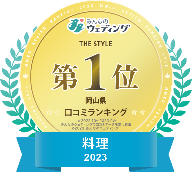 【THE STYLE】<みんなのウェディング>2023年 年間口コミランキング受賞いたしました