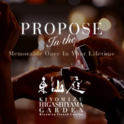 チャペルの窓一面に広がるのは東山の景色と青い空。「清き水」の音だけが軽やかに心地よく響きます。縁結びの神様として1300年以上もの間、信仰を集めてきた「地主神社」の神様に見守られて、とっておきの一言を。生涯忘れることができない一瞬を迎えませんか。