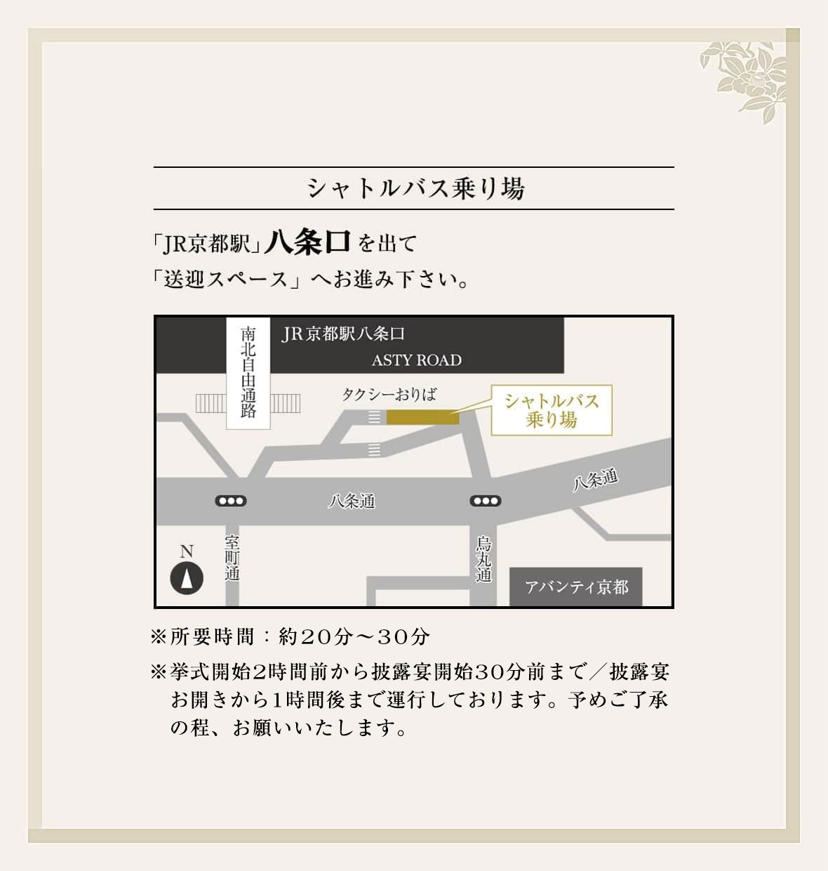 また、JR京都駅八条口から「KIYOMIZU」専用の送迎バスが無料で運行しております。