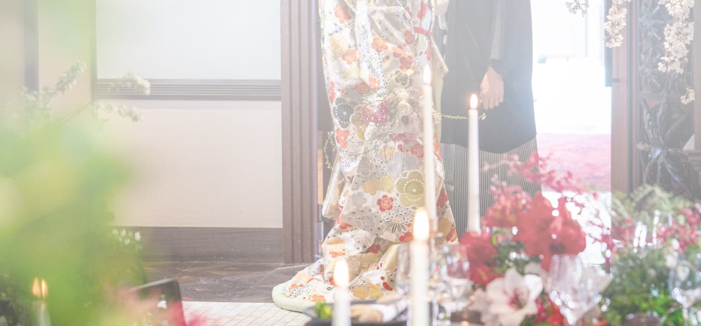 世界文化遺産、清水寺から徒歩3分。館内から八坂の塔を望む京都ならではの立地です。和モダンテイストの会場は華やかなドレスも雅な和装も映えます。