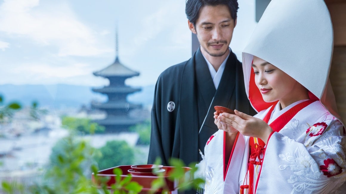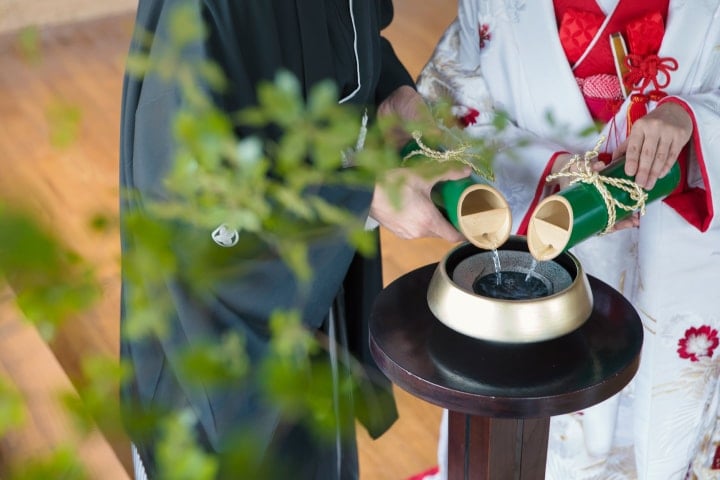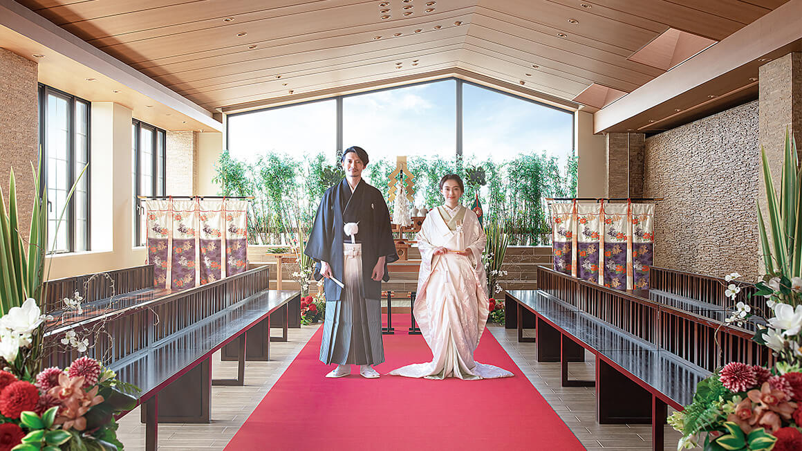一つひとつの儀式に意味が込められた神前式。日本独自の挙式は、凛とした空気が広がります。