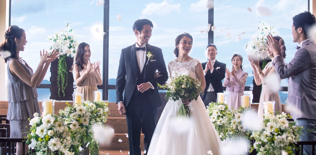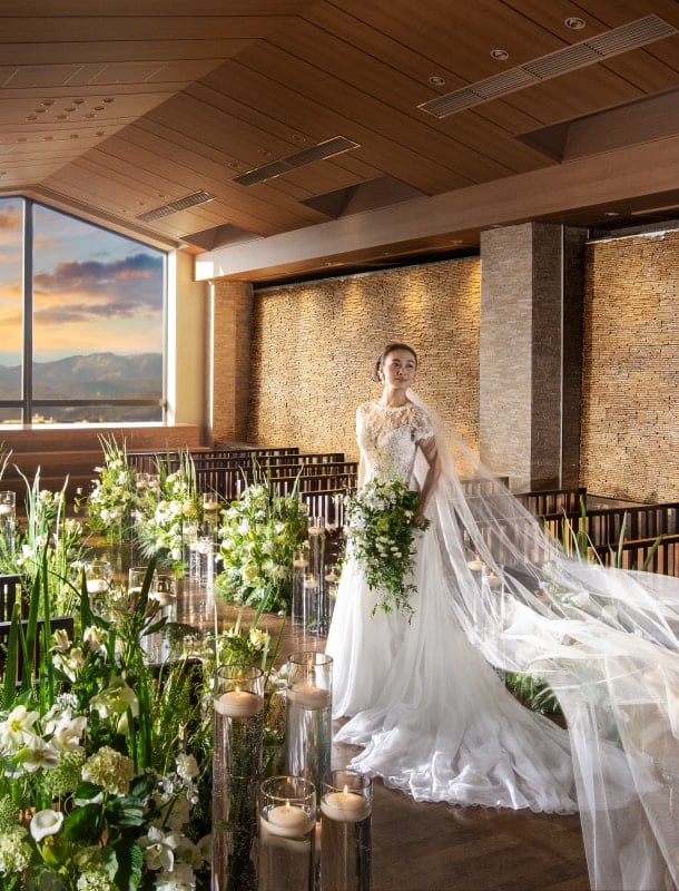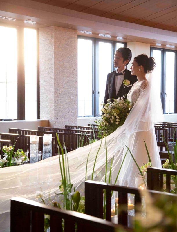 誓いのキスや指輪の交換…清らかな賛美歌の流れる中で、ロマンチックに愛を約束します。