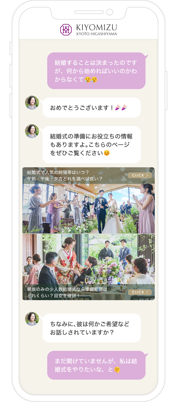 LINEで友達登録をしていただき、会場でご成約をされたお客様にはその場で「10万円OFF」!ご成約をされなくても、しっかり役立つ結婚式情報をお届けします。