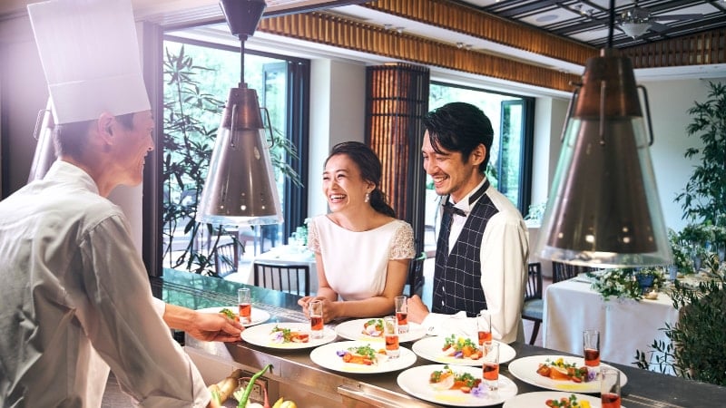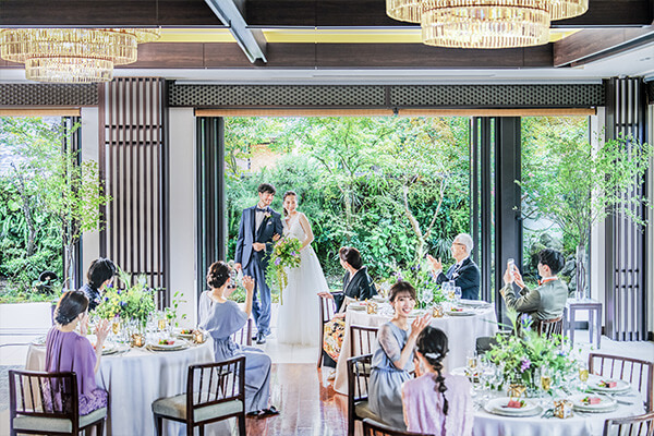 プライベートガーデンとひとつながりになったKIYOMIZU。ガーデンからの入場などサプライズ演出も人気です。