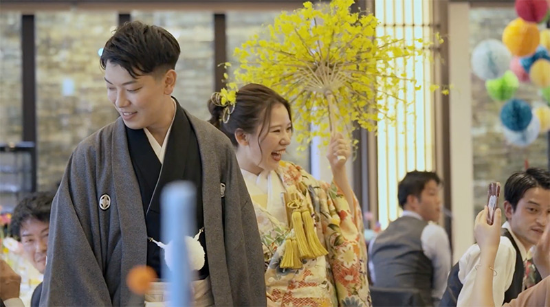 新婦は優雅な日本舞踊を披露し、和の表現の美しさに、ゲストは笑顔で拍手しました。