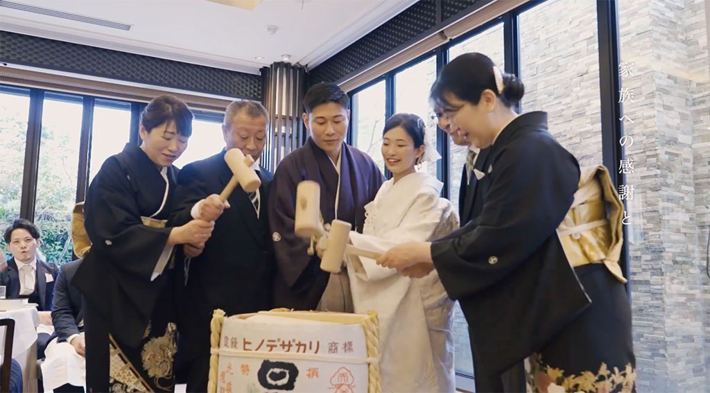 おめでたい鏡開きを行い、ゲストにはファーストドリンクとして神酒がふるまわれました。