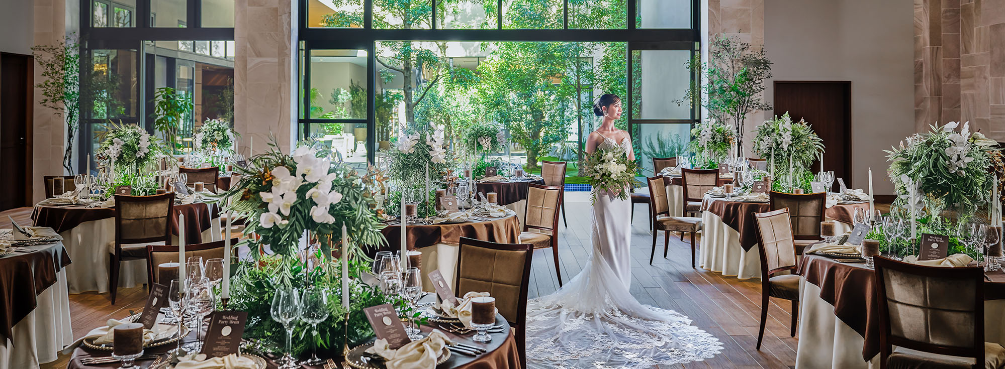 チャペルやパーティ会場はもちろんロビーやホワイエ、そしてガーデンもご希望通りにコーディネート。ウェディングテーマやトレンドを取り入れてアレンジできます。