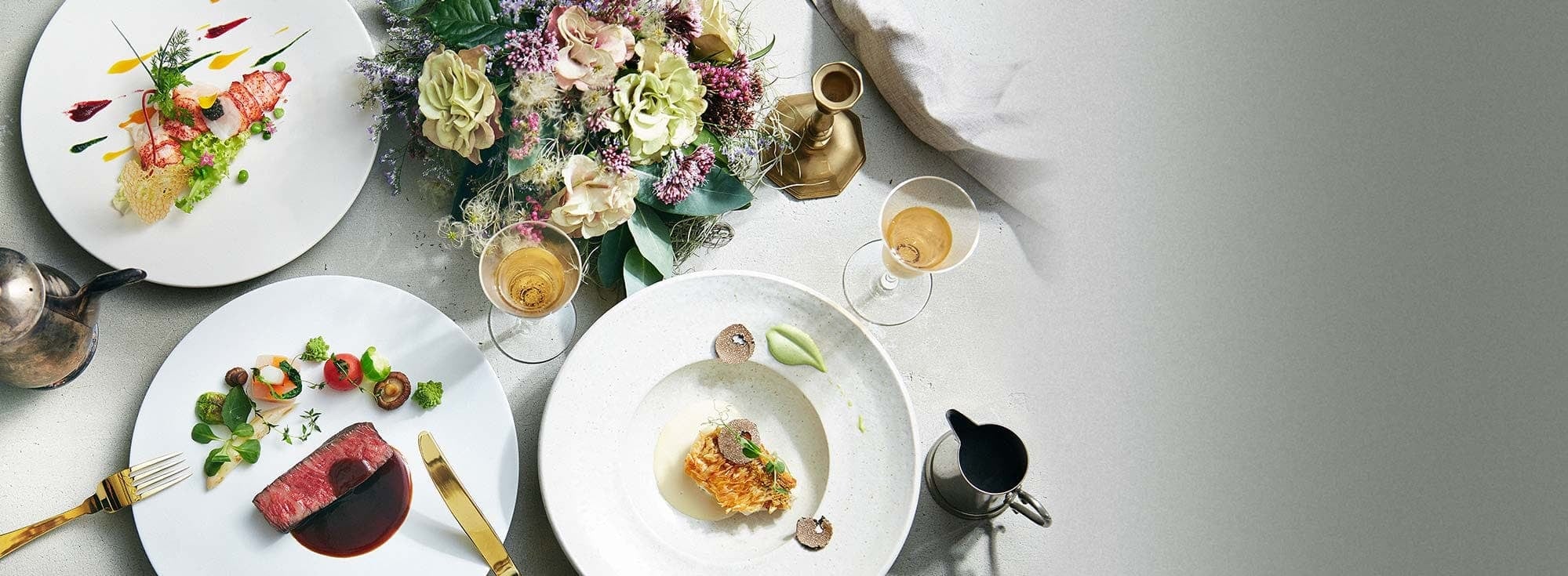 おふたりの想い、忘れられない味などをシェフがお皿の上に再現。ゲストの年齢層やお好みなども考慮して世界にひとつのフルコースを創り上げます。