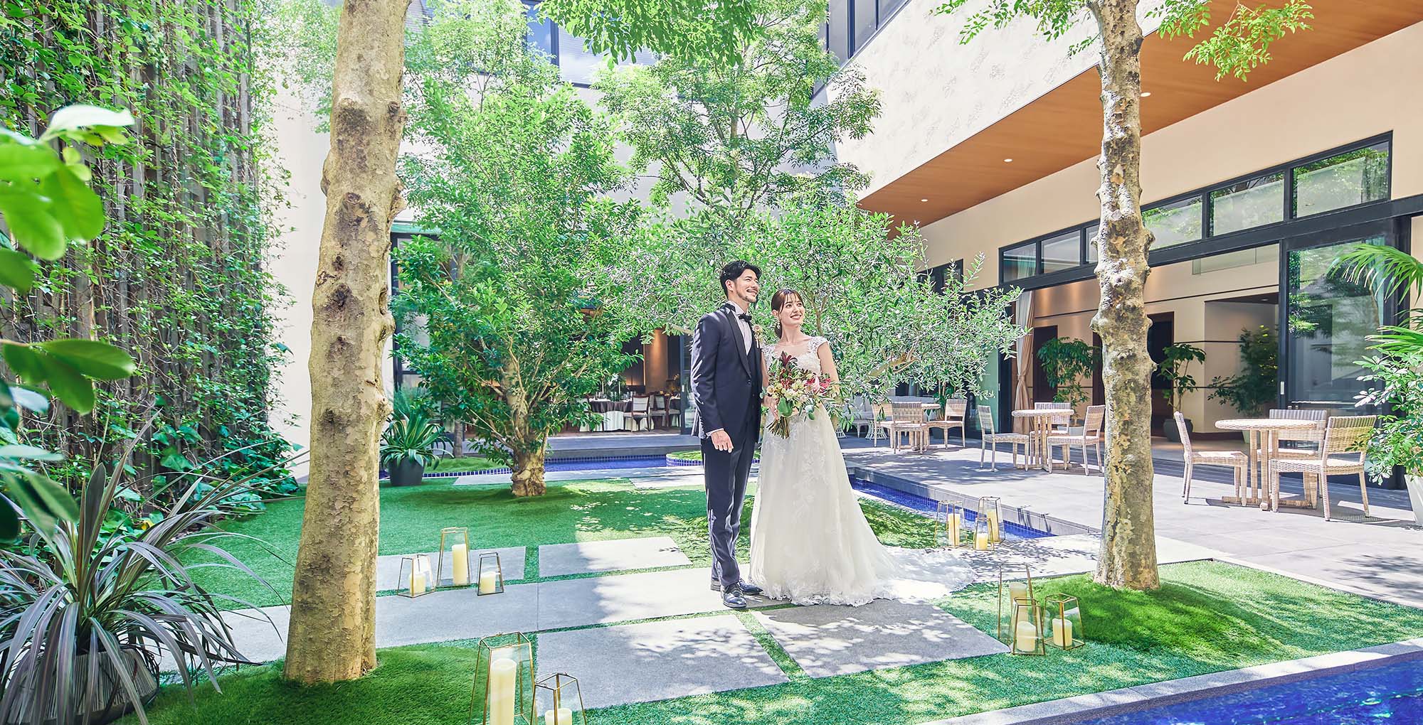 ⽔と緑があふれるガーデンを中⼼に結婚式のために創られた邸宅で、すべての空間を⾃由に使いおふたりとゲストだけのかけがえのない時間をお過ごしください。