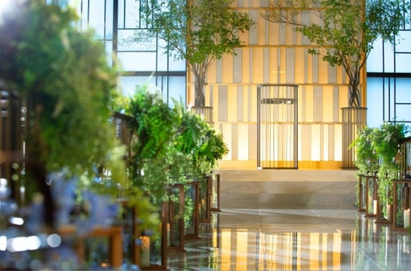 装飾を多く施さなくても、光と空気感だけで成立するチャペルは、静かで厳かなキリスト教式にぴったりです。