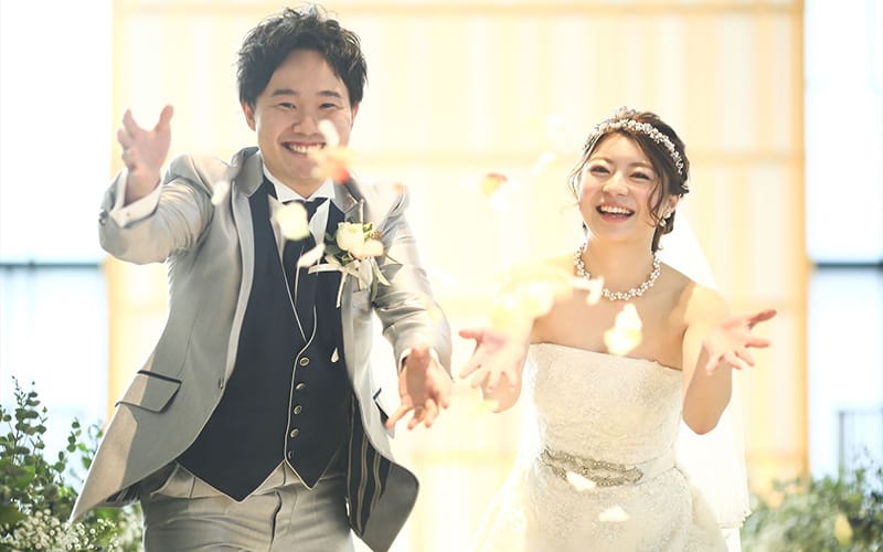 柔らかな光がさすチャペルで「おめでとう!」の声が響く正統派ウェディング。