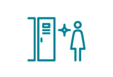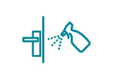 消毒スプレーによる、お化粧室、扉、ドアノブ、サッシの取っ手部分の定期的な殺菌とふき取りを実施しております。