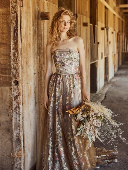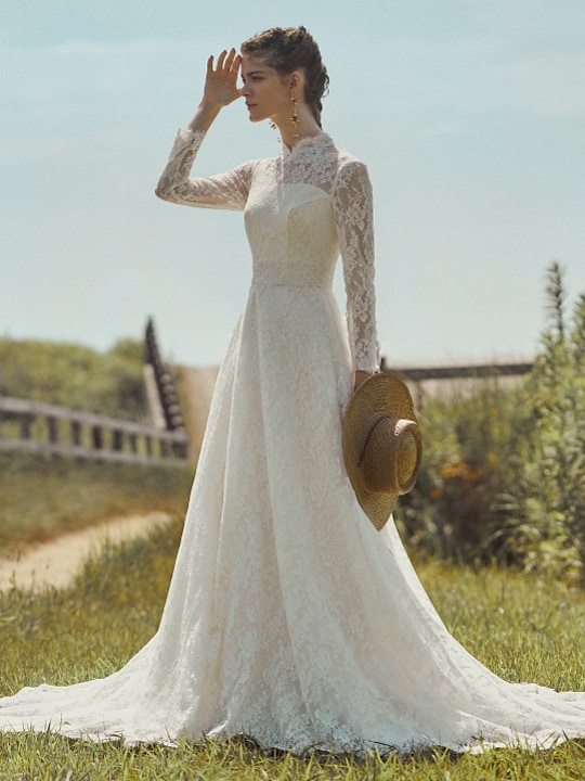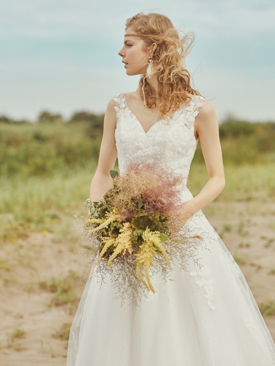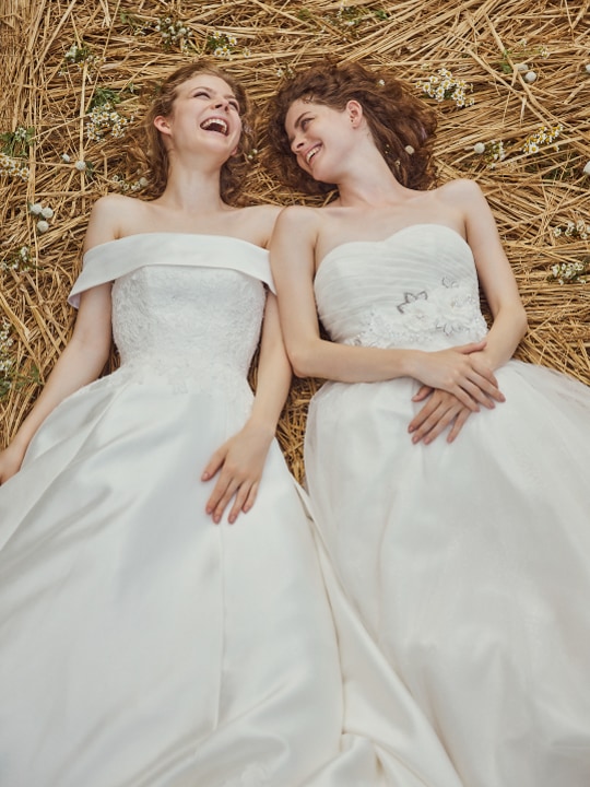 陽光に透けるやわらかな衣裳は、特別な時間も自然体で過ごしたいという花嫁にぴったり。シアーで軽やかな生地が動きに合わせて優雅に舞い、寛いでパーティを楽しめることでしょう。