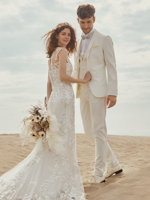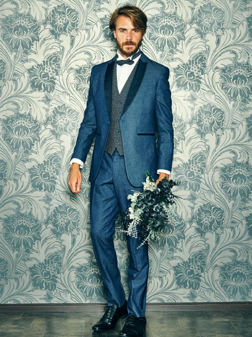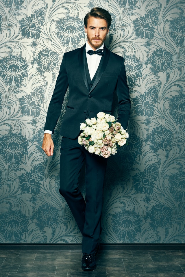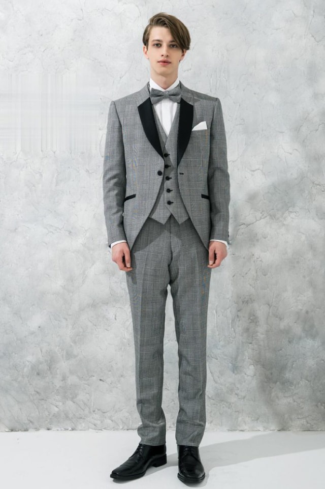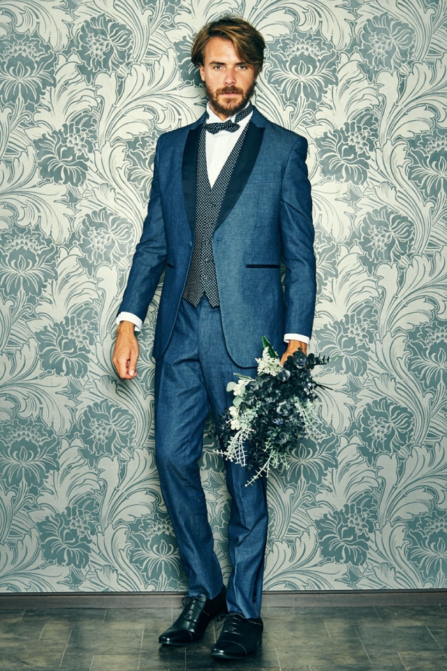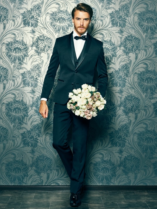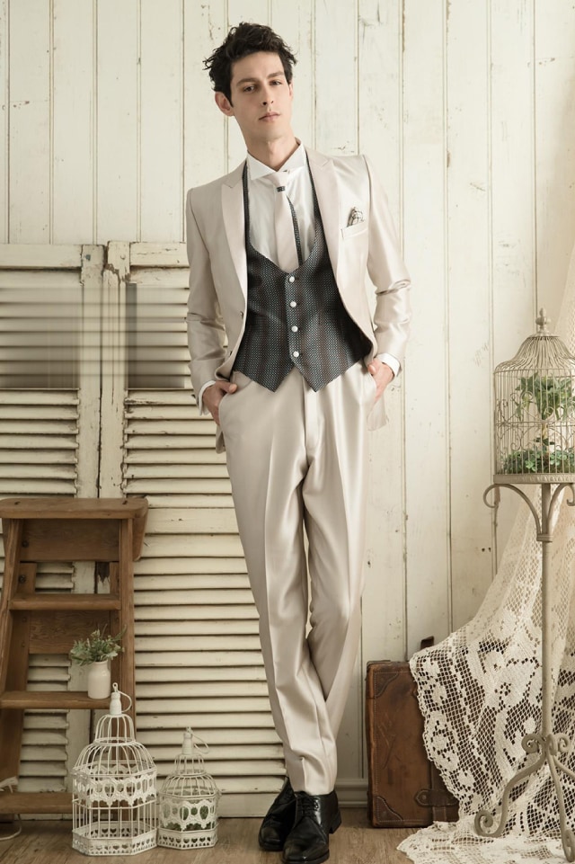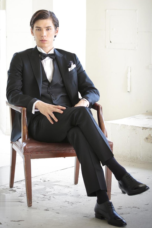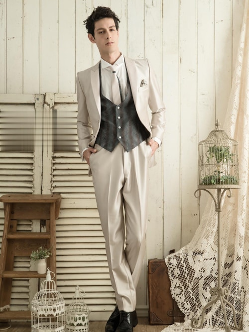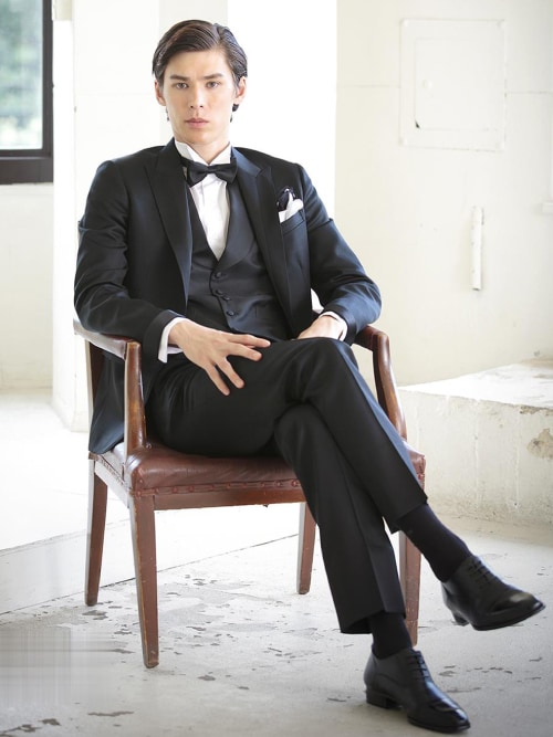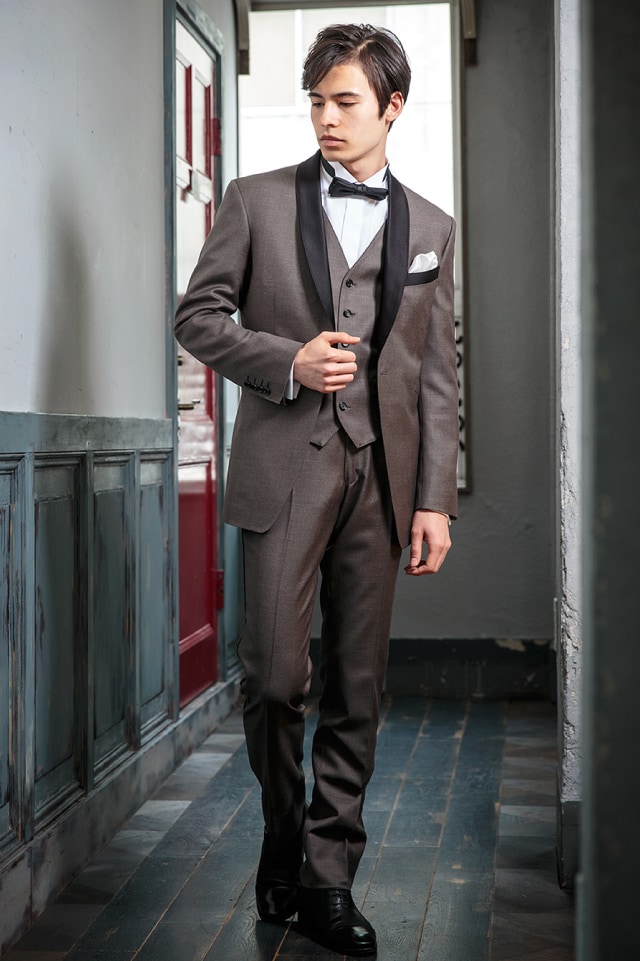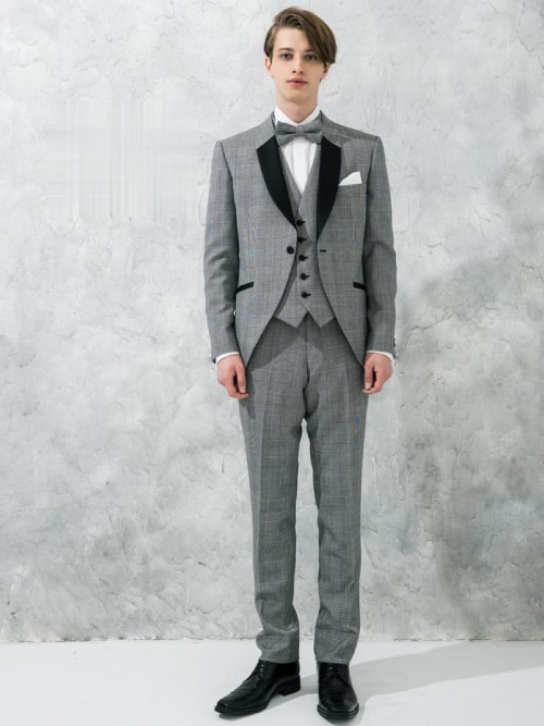 シャープなラインやパーツにデザインを凝らしたタキシードはおしゃれな彼に。タイやカフスなど小物でアレンジを利かせたり、チェックなど柄物を取り入れたり。自由な着こなしを。