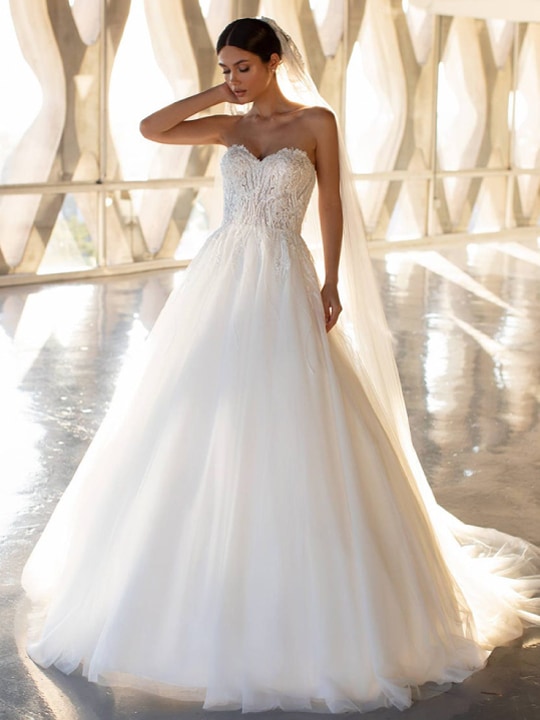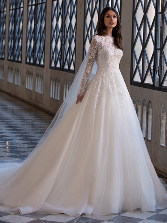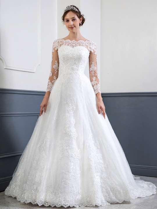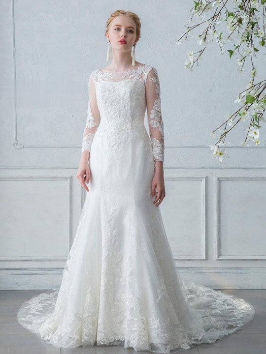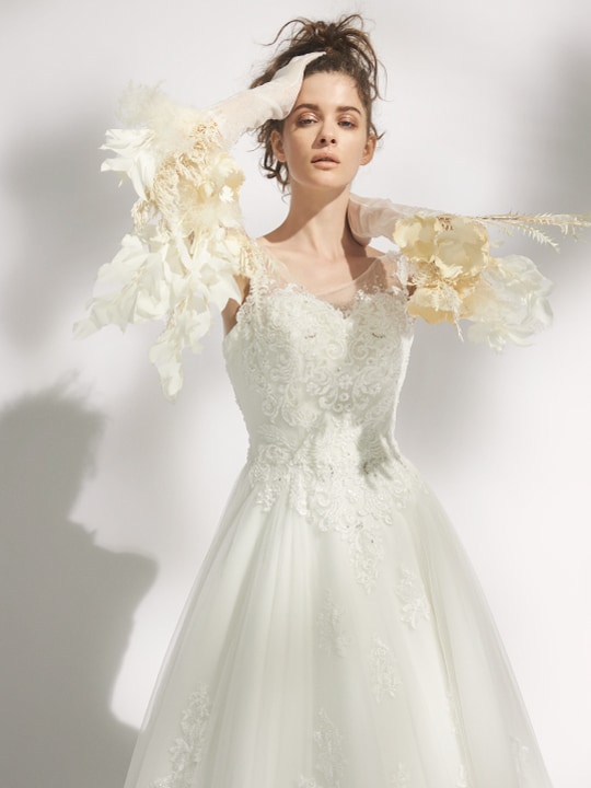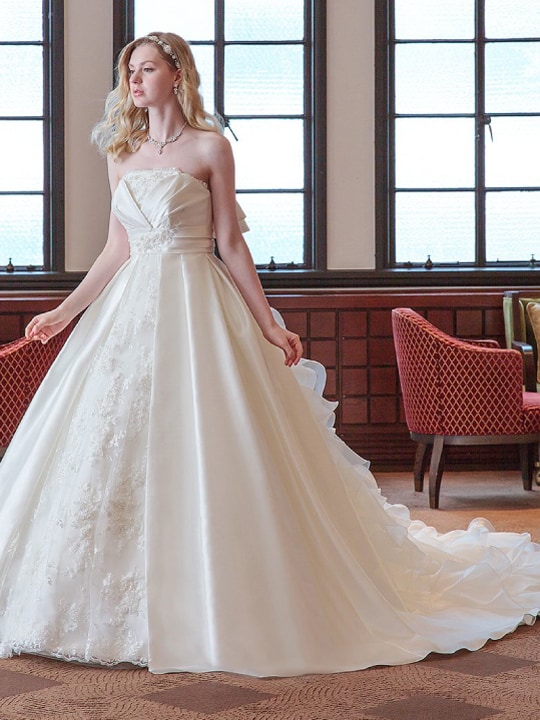 いつの時代も羨望の眼差しを受ける王道のマリエ。まろやかなシルクや繊細なレースがあしらわれた一着は花嫁にだけ許される贅沢です。普遍的な美しさにあなたらしさを添えて。
