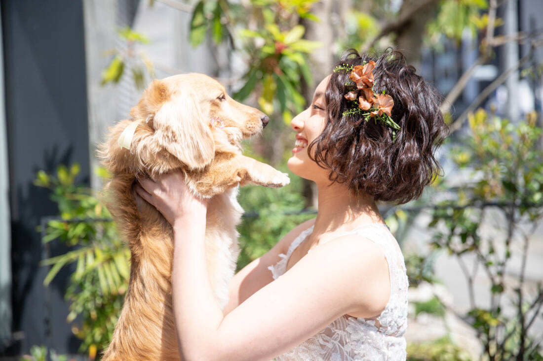 ゲストと一緒に撮る記念撮影でも、わんちゃんがいることで一気に可愛らしく映えますよね♪
