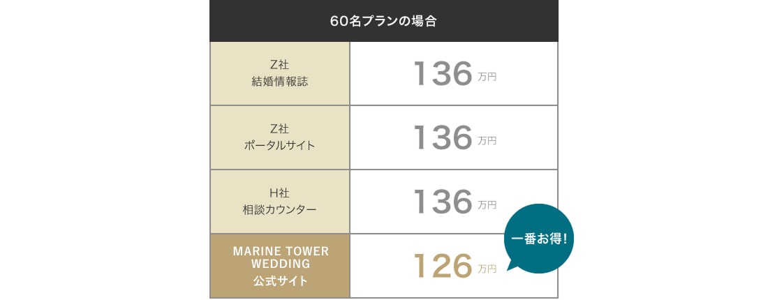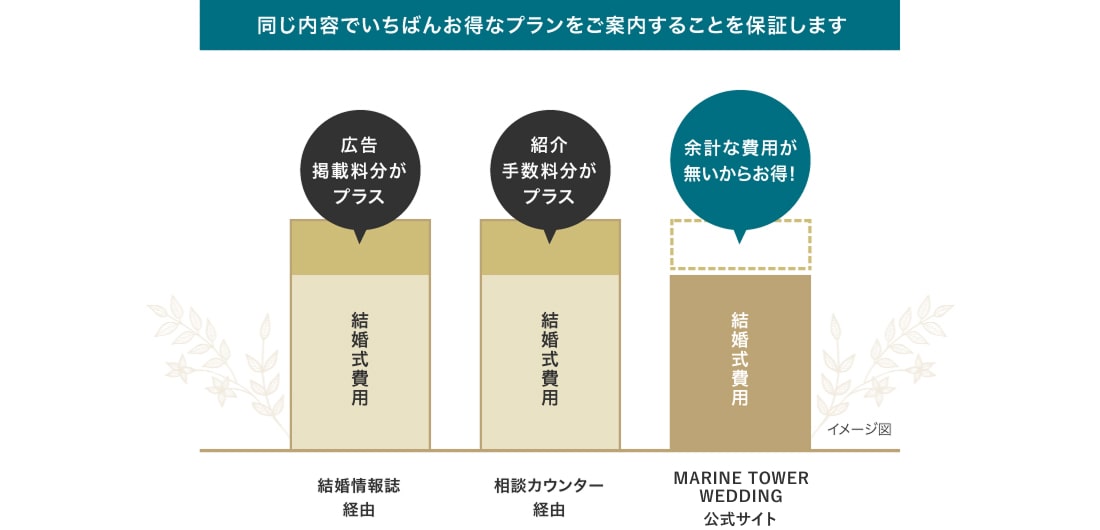※公式HP以外からの予約(結婚情報誌・式場紹介サイト・相談カウンター等)の場合は、ベストレート保証の対象外となります。公式HPとの重複予約も対象外となります。
