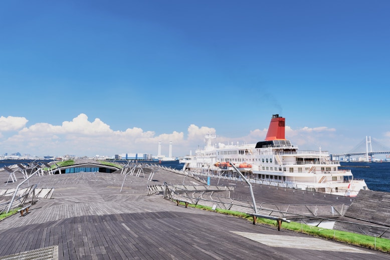 山下公園に隣接する大さん橋は、港町らしくのびやかで開放的です。