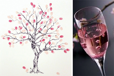 結婚証明書のウェディングツリーのスタンプを桜色にしたり、