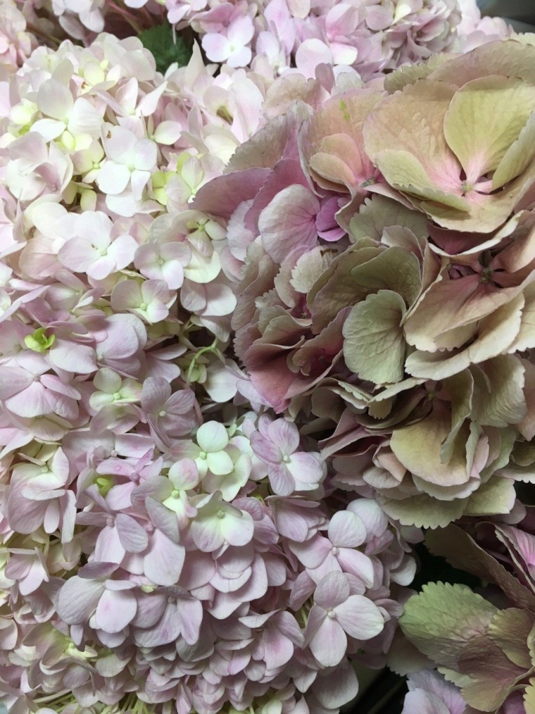 ピンク色のアジサイと、アンティーク色で