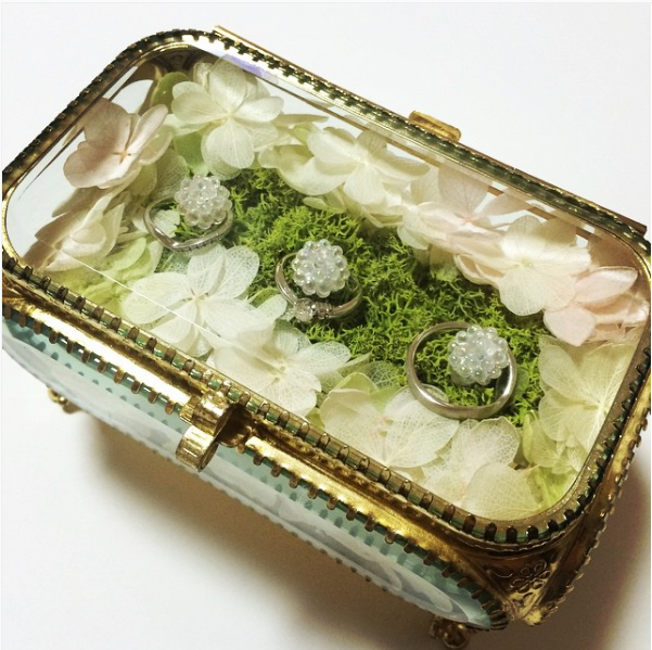 新婦の結婚指輪に重ねてつけることで、「永遠の絆にフタをする」という意味が込められています。