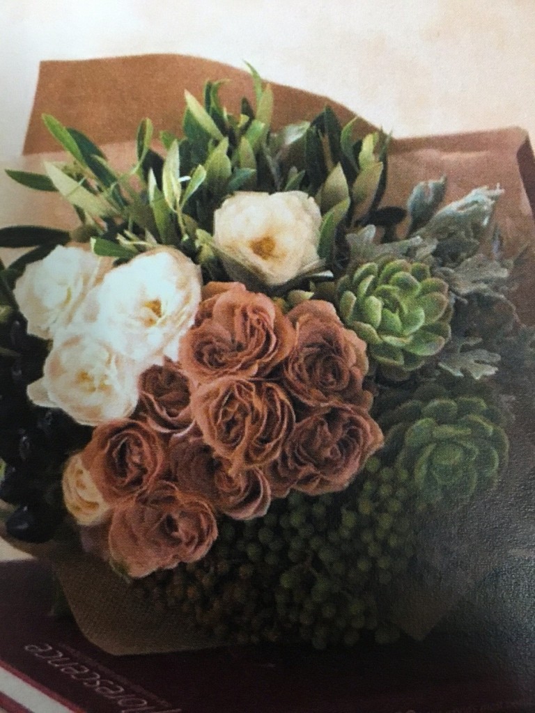 こちらはちょっと珍しい多肉植物が入ったお花束です