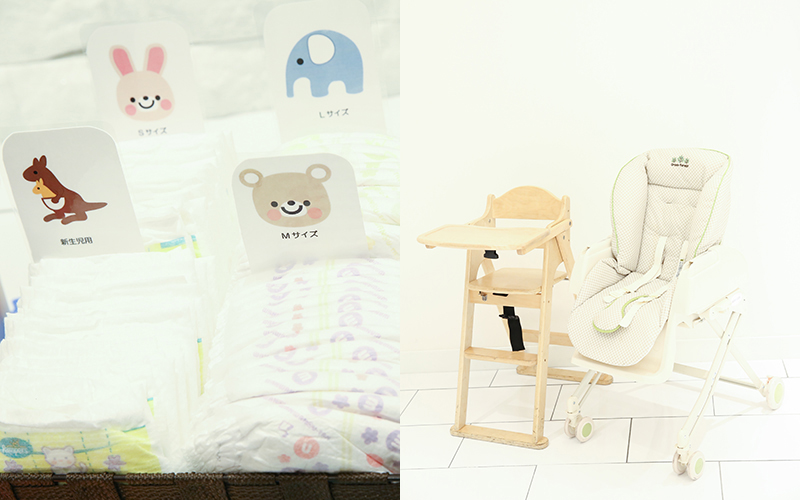 ゲストママも気兼ねなく安心して過ごせるように授乳スペースや絵本・おもちゃの貸出、無料で使っていただけるオムツなどあらゆる備品を完備しています。