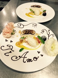 デザートにチョコペンでメッセージを描かせていただくことがよくあります。